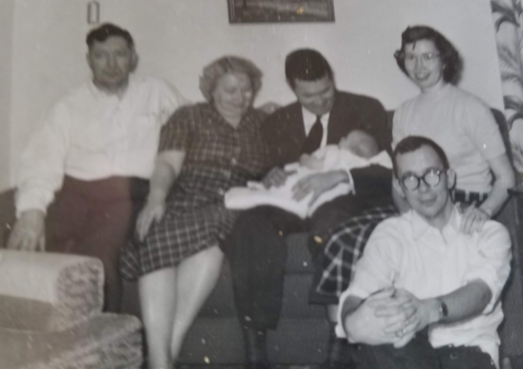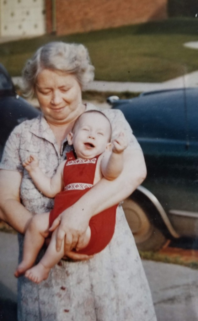 I’m not sure what happened that day, but I got up in that apple tree, scooted along a limb, and there just did not seem to be a good way back down. I was unusually stuck, and spooked. I told one of the kids there to go tell my Gram. I’m not sure where my parents were, but this was an emergency!