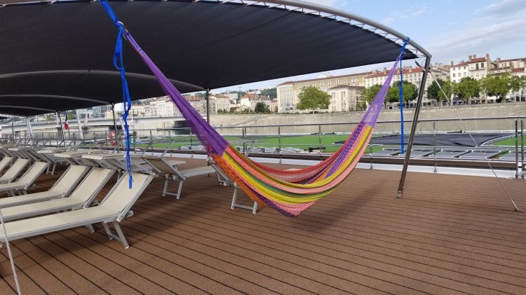 Twice now, I have taken European river cruises with hammock – and sought permission to sling out on deck. The first Captain asked me why, and accepted my “soothes the back” reasoning. The second Captain called a meeting, with his First Mate and his Safety Officer, to evaluate and inspect my intentions. They checked it out, conferred, and swiftly granted permission. A lovely way to enjoy passing scenery.