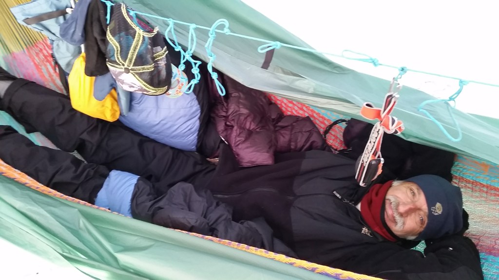 I have had several occasions to spend the entire night in a hammock. Several were while winter camping, and while generally it is a piece of cake to climb into a hammock, when winter camping, with pads and mittens and a down sleeping bag and all of the other requisite paraphernalia, it can be quite a struggle.