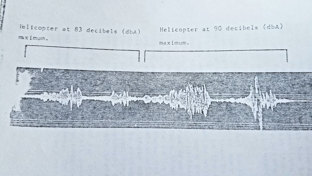 I looked at the entrance/exit and decided to very carefully go for it, thinking small thoughts and trying to curl my frame, much thinner at the time, into a slither. I was getting ready to make my move when – gravel slipped – I lost my balance – the seismograph decided to bite me – I hardly know what caused it. I lurched, at any rate, and came within an inch of slamming into one of those ancient walls. It was just the sort of disaster we were trying to prevent helicopters from causing!
