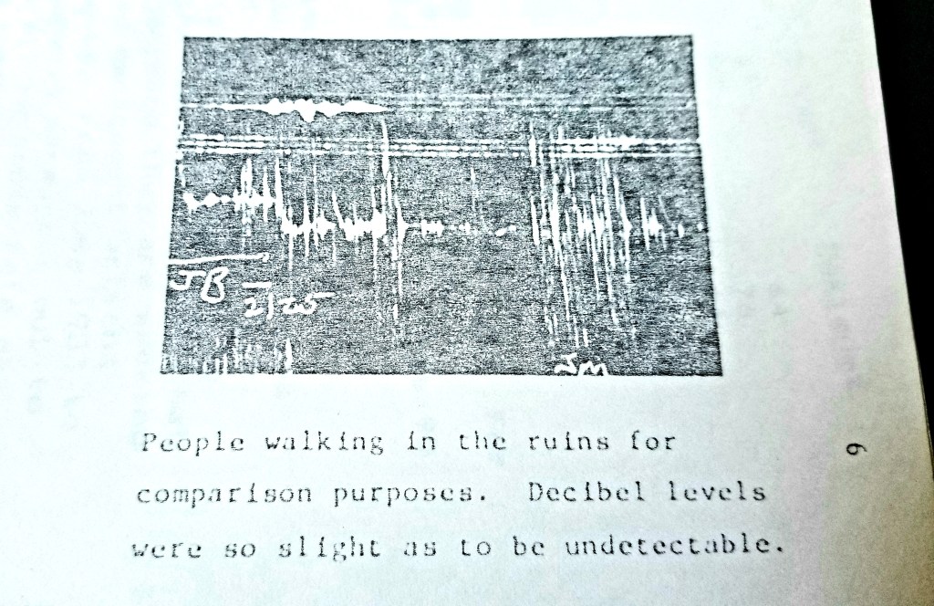 John and his buddy, an archeologist, hoisted the seismograph and handed it over the wall, which was about five feet tall. I grabbed hold of it and tried, oh so carefully, to set it at my feet. I flipped the switch and a deep internal growling indicated it had begun its work and was capturing every tremor and vibration of the structure – as well as my shaking nerves, no doubt.